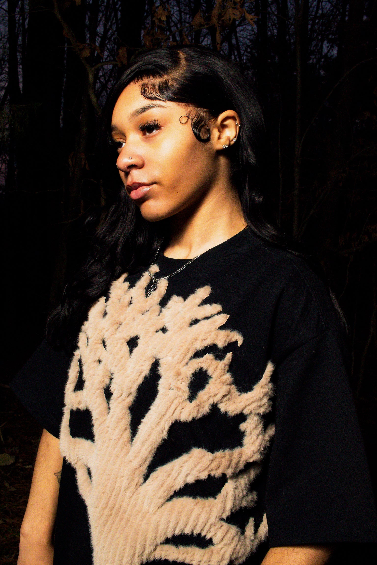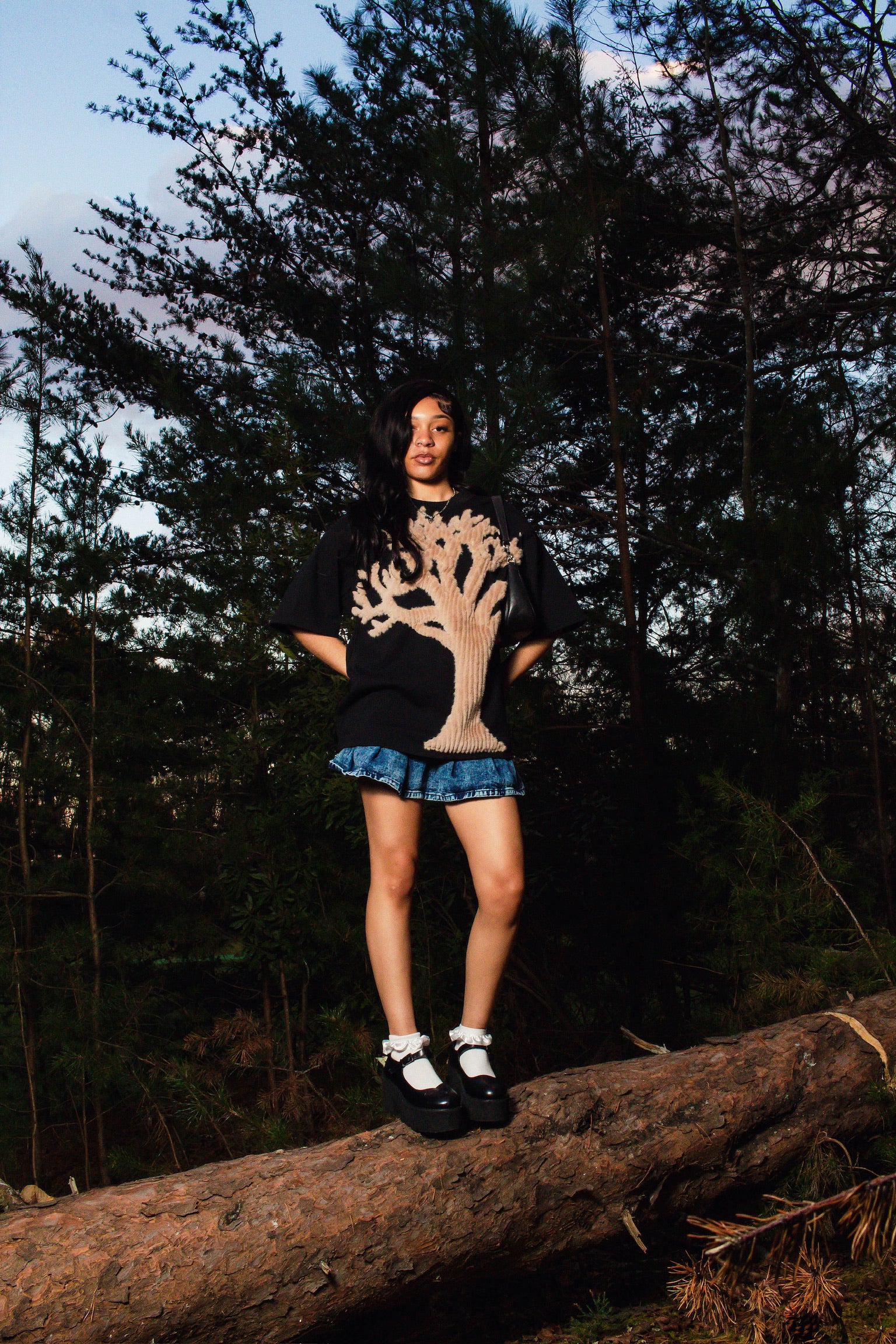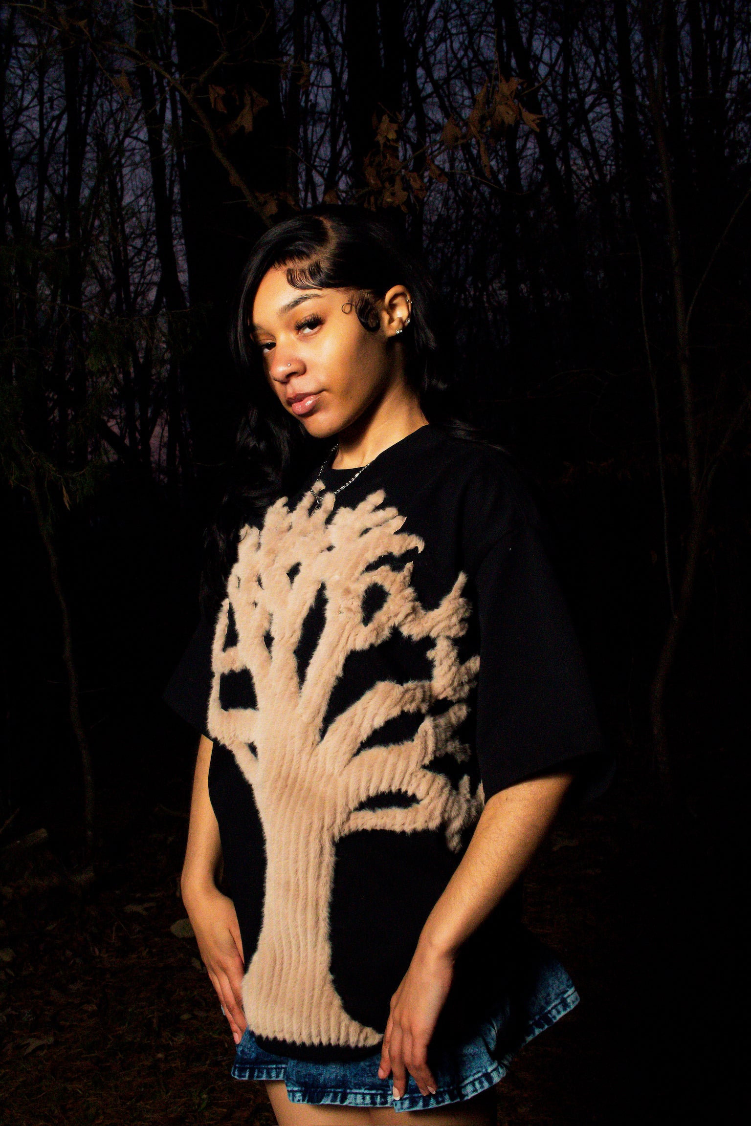 Oversized T-shirt w/ hand-stitched tree design